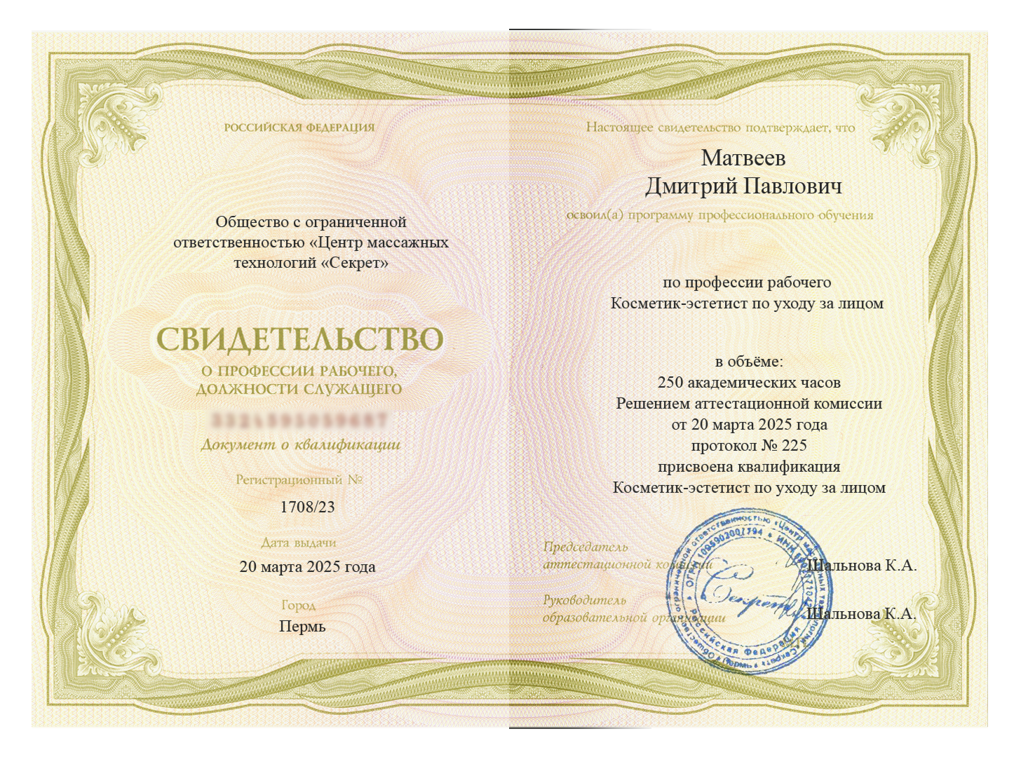 Образовательные услуги оказываются ООО «Центр массажных технологий «Секрет».